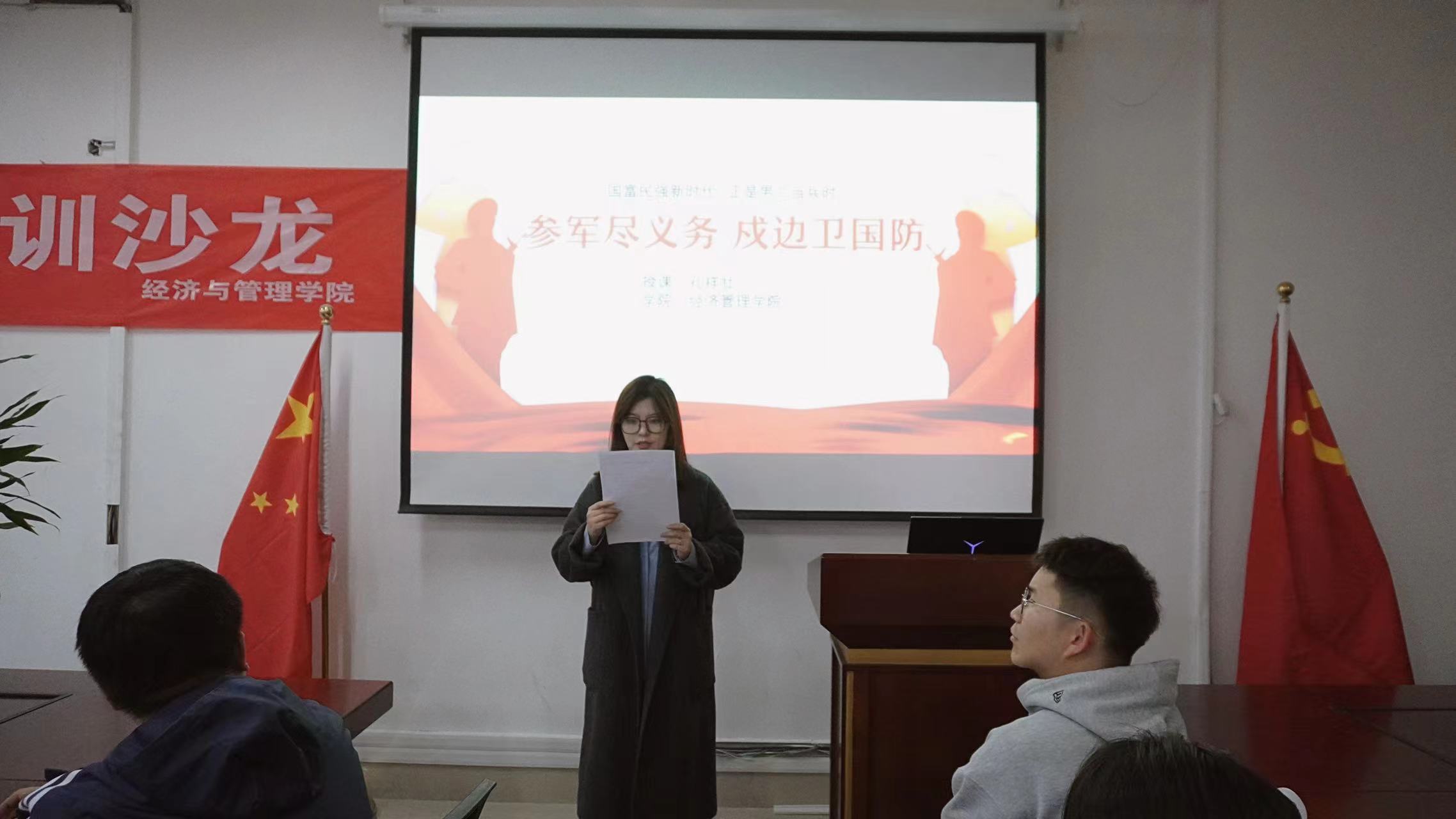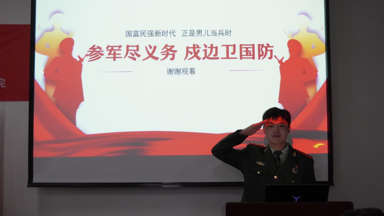 孔祥壯老師以參“軍盡義務戍邊衛國防”主題,從征兵入伍條件要求、國防意義、當兵的十大好處、應征入伍的基本流程、退役士兵的優惠政策、拒絕和逃避服兵役行為的處罰六個方面與現場輔導員做了詳細交流。