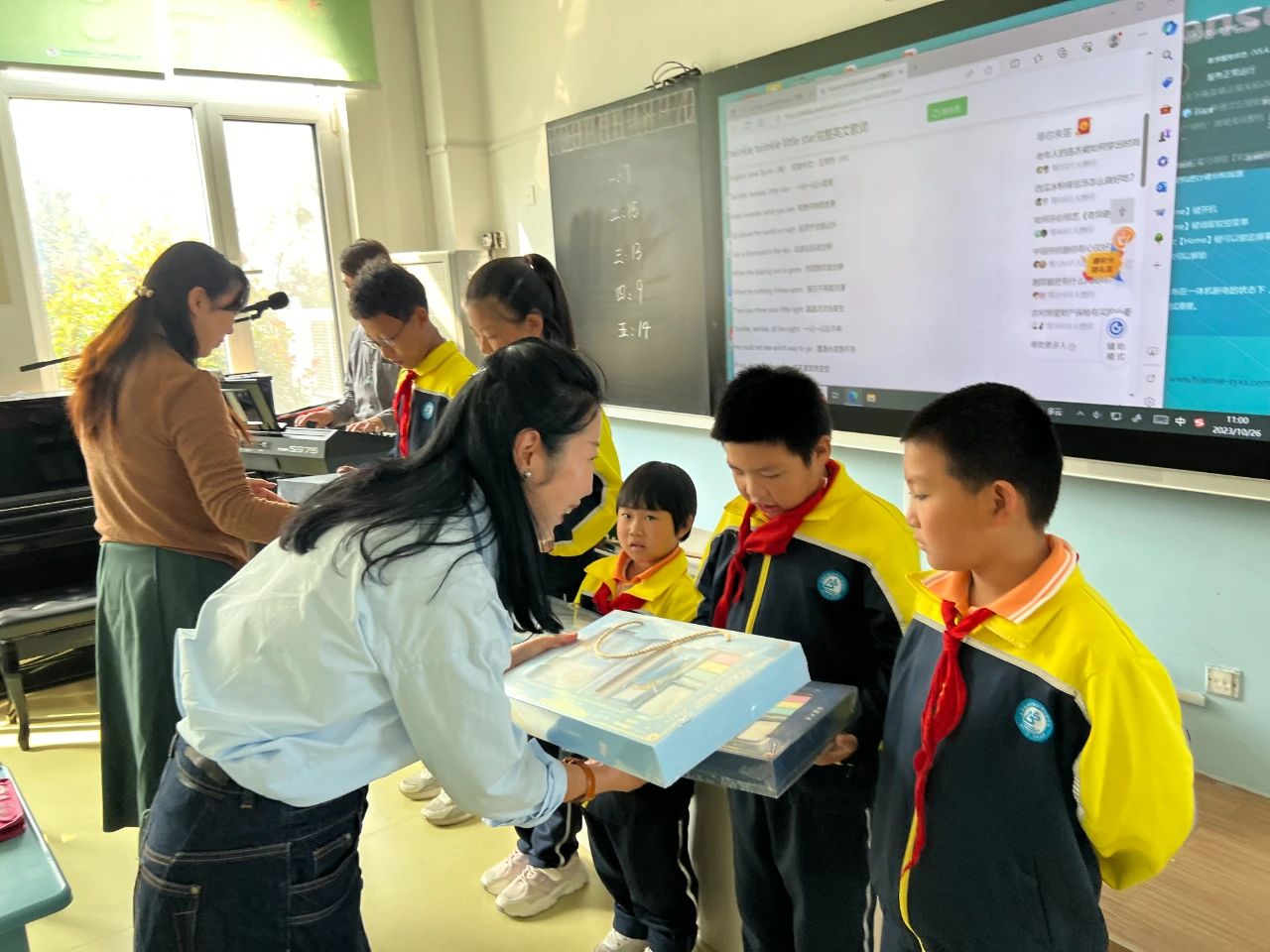 活動在全體師生悠揚的合唱聲中進入尾聲,孫伶莉老師為學生們頒發了精心為他們準備的文具禮盒。歡樂的時光總是那么短暫,就在大家陸續離開教室的時候,六年級顧祥赫同學悄悄拉住張葉帆老師的袖角說:“哥哥,我能摸摸你的琴嗎,我能單獨和你拍張照片嗎?”張老師連聲應允,并將打包好的設備重新拆開,對于顧祥赫同學“長大后我也能當一名懂音樂的外語老師嗎”的問題,張老師告訴他外面的世界很大很大,好好學習,今后一定可以成為社會最需要的人。