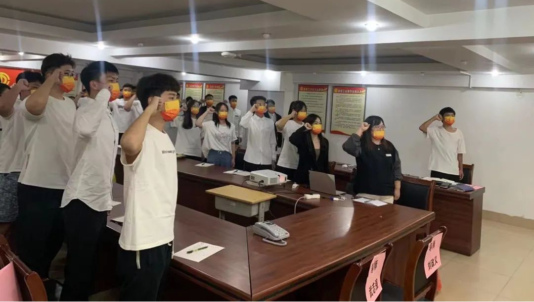 在經濟與管理學院團總支副書記王澤翔的帶領下團員們紛紛舉起右手,面向團旗現場響起了陣陣激昂的宣誓: