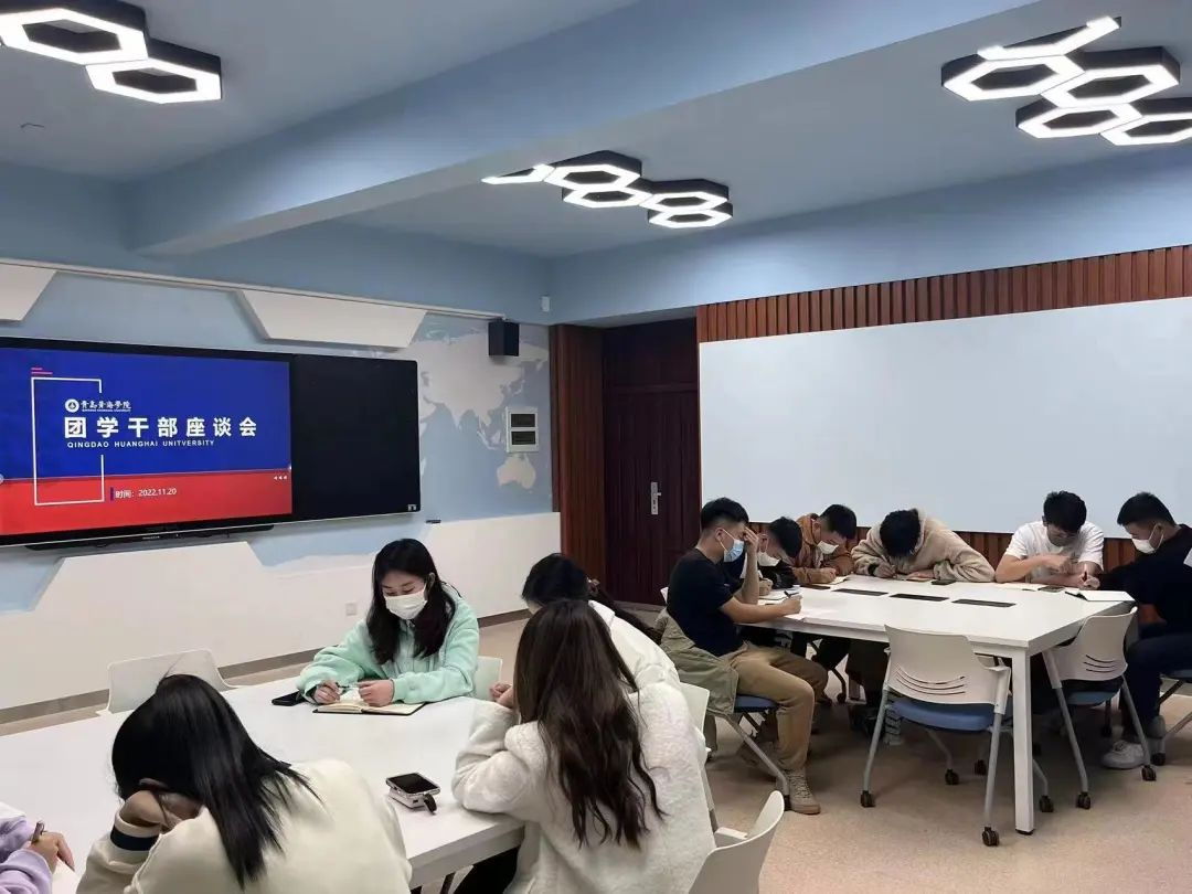 2022年11月20日,經濟與管理學院各部門在知新樓434智慧教室舉行了團學干部座談會。參加本次會議的團學干部有:李瑋、王骕、王澤翔、門寶濤、許樹波、張雄、王明輝、臧鵬翔、金園樺、于金鳳、王藝銘、吳潔、王可心、郭姿含、秦晚秋、周欣慧、楊宇、魏勇、楊盈盈、蘇夢媛、宋宏偉、鄭宇霞、劉鐵。