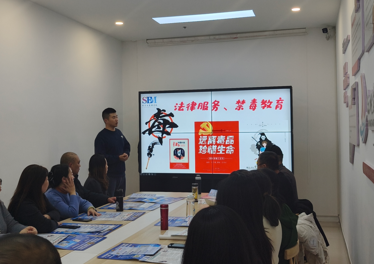 1月8日,星光島社區舉辦了一場意義非凡的“小風鈴·傳真情”-法律服務、禁毒教育宣傳活動。此次活動由靈山灣派出所、星光島社區與經濟與管理學院攜手舉辦,吸引了眾多人員參與,包括國際商學院與經濟管理學院學生第四黨支部組織委員朱升學老師、星光島社區黨委副書記楊晨、靈山灣派出所民警殷佳亮警官、學生會代表以及社區居民等,共同見證了這場活動的圓滿舉行。
