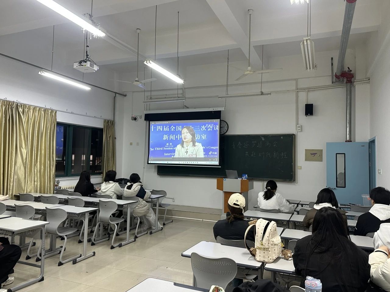 為深入學習貫徹2025年全國兩會精神,引導同學們關注國家發展,增強政治意識和社會責任感,3月12日晚,青島黃海學院經濟與管理學院組織全體學生利用晚自習時間觀看兩會精神學習視頻,在全院范圍內掀起了學習兩會精神的熱潮。