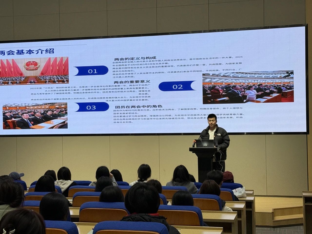 為深入學習貫徹兩會精神,引導團員青年關注國家發展、明確自身使命,3月10日下午5:30,青島黃海學院經濟與管理學院于知行樓434報告廳開展了兩會精神學習活動,本次活動由朱老師主講,學院團員參與。