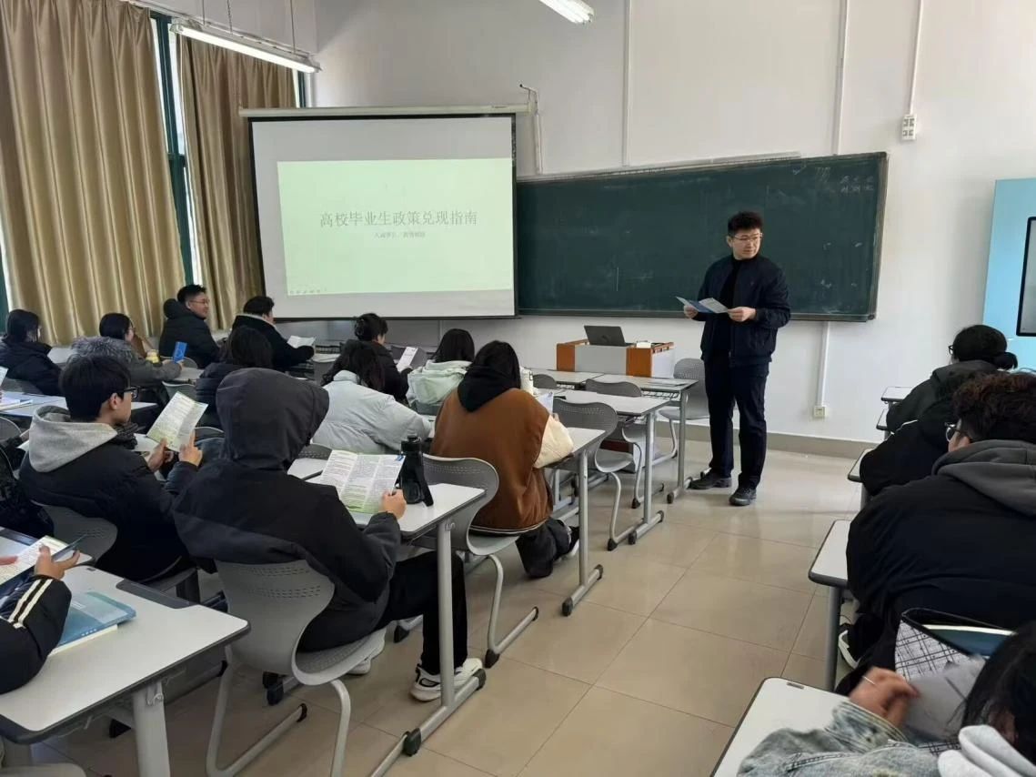 2025屆全體畢業班輔導員同步組織班級政策宣講會,通過主題班會,向學生詳細解讀政策申請流程與要點。