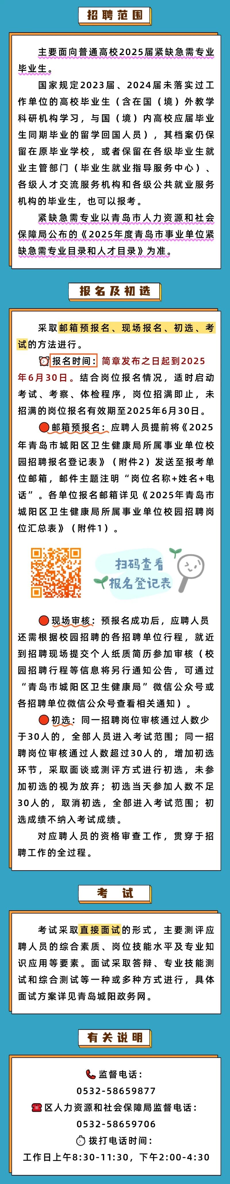 招聘信息丨城陽區衛生健康局所屬事業單位校園招聘
