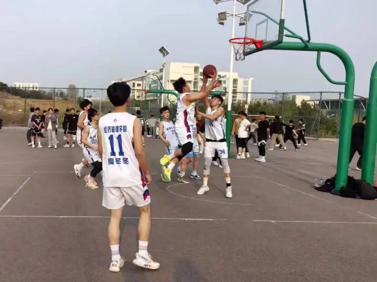 4月9日下午,虎山操場上歡呼聲此起彼伏,國際商學院與數字商務學院的男籃小組賽在此激烈上演。