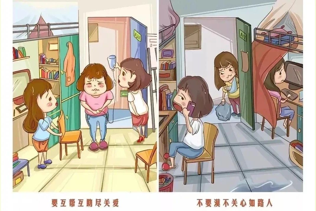 要互幫互助:室友有困難時主動關心,共同進步。