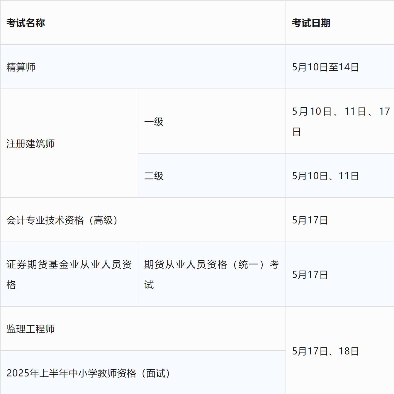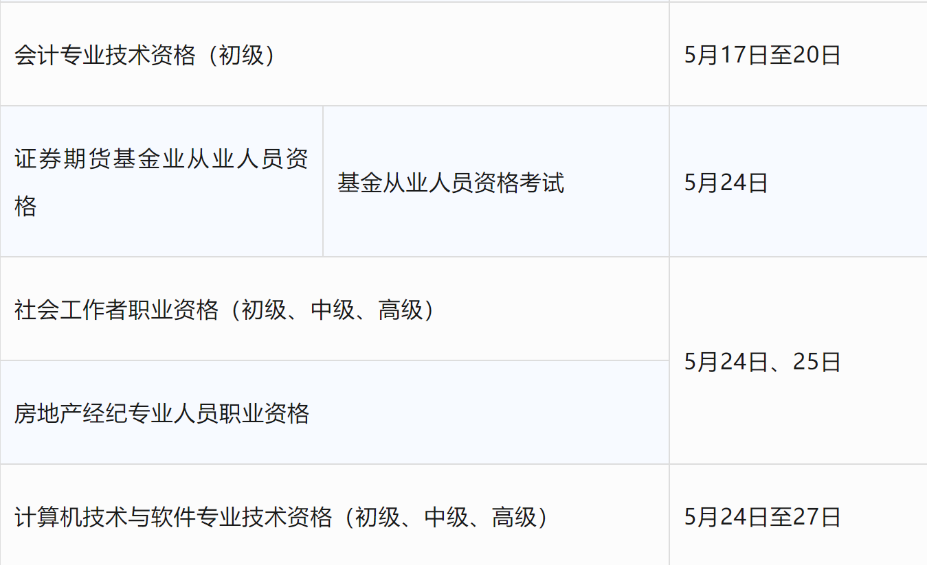 5月專業技術人員職業資格考試