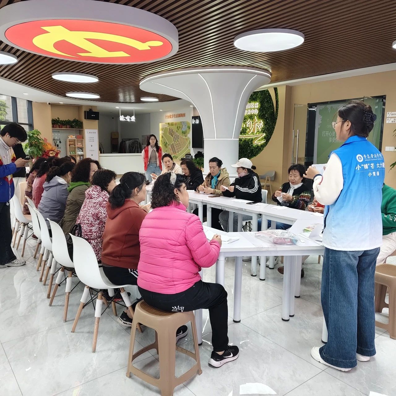當康乃馨花籃制作完成,志愿者們手捧著這些承載著愛與祝福的作品,走到社區居民身邊。他們將康乃馨輕輕遞到居民手中,同時鼓勵大家用文字寫下對母親的心里話,或是通過擁抱等肢體語言表達對母親的感恩。現場氛圍溫馨而熱烈“小黃鋒”志愿者們始終以飽滿的熱情和細致的服務,陪伴著每一位參與者。