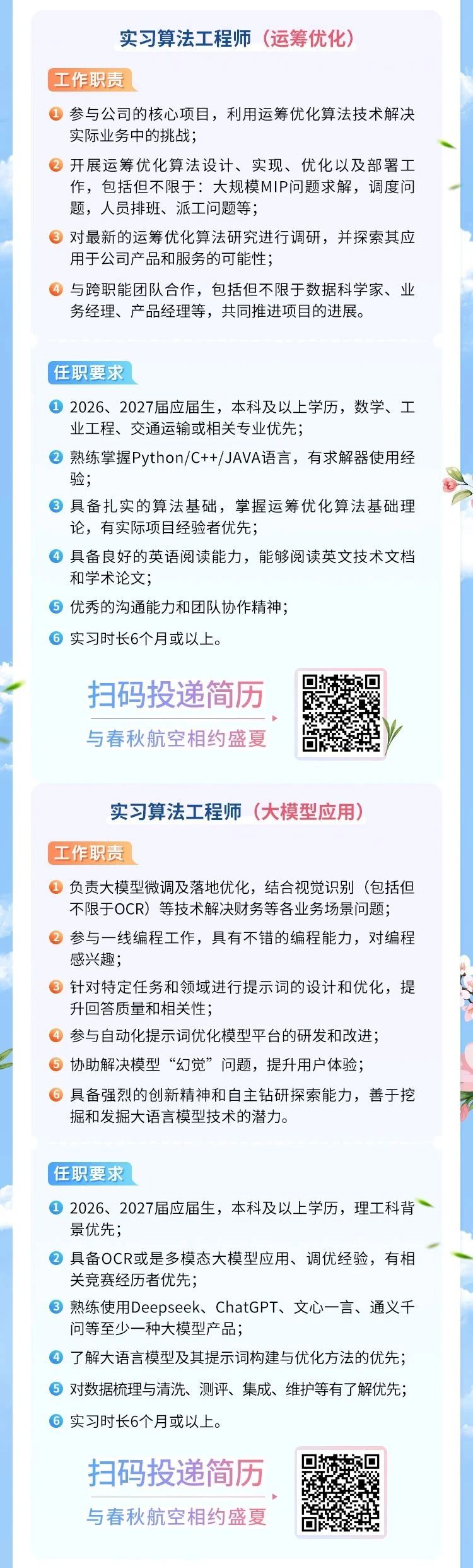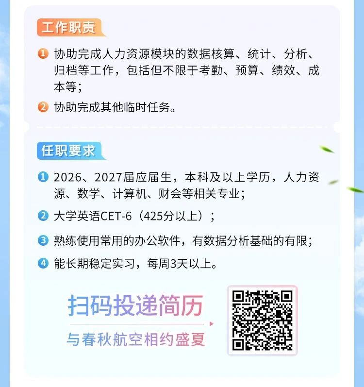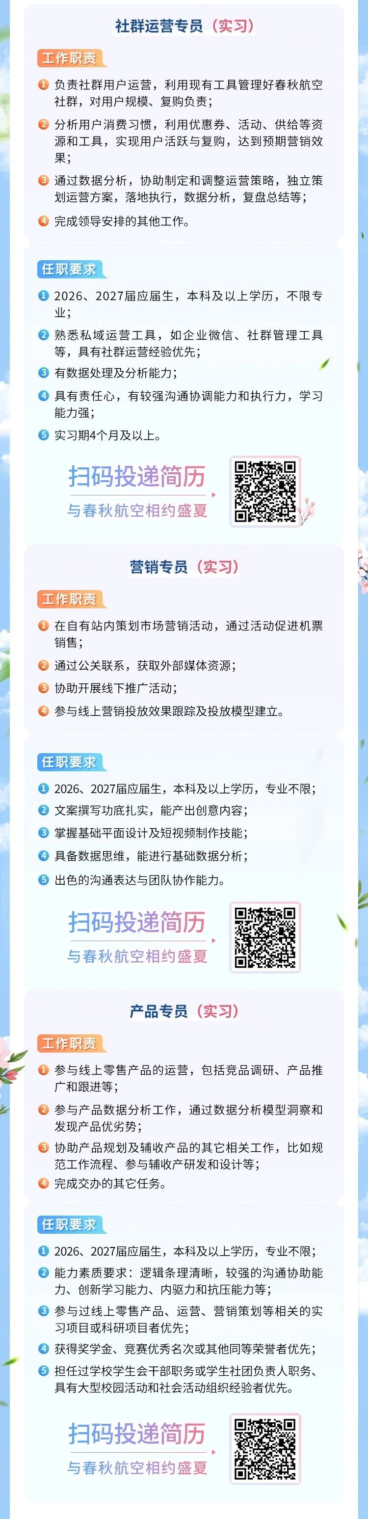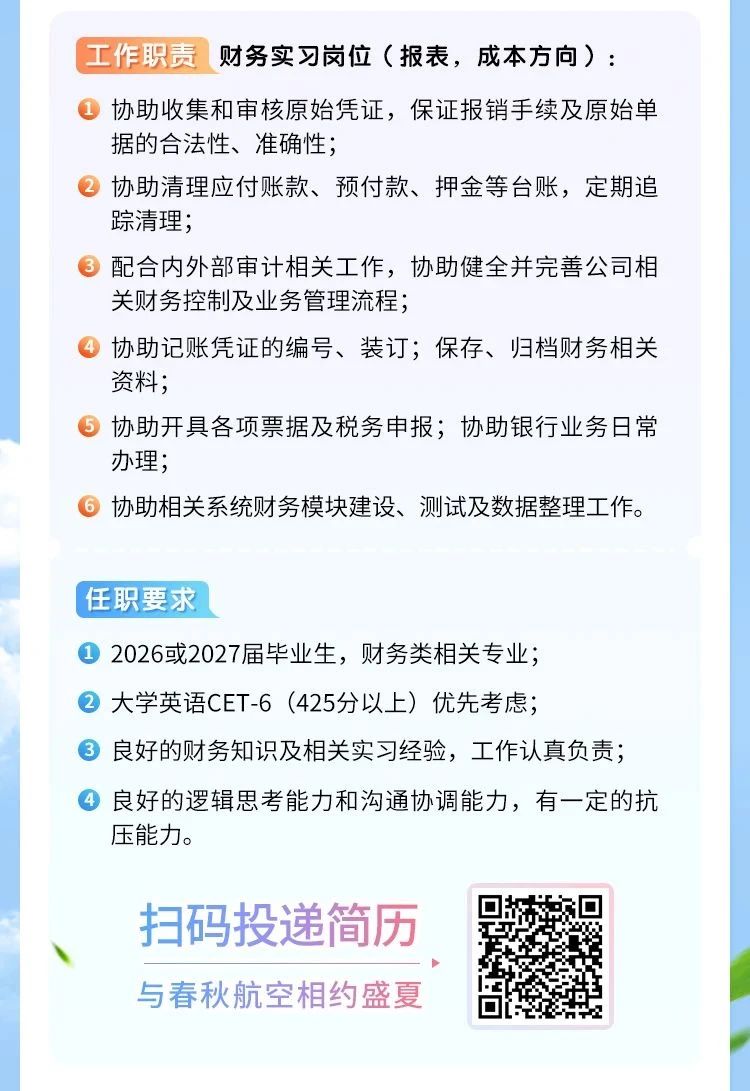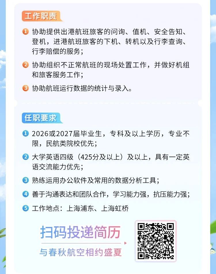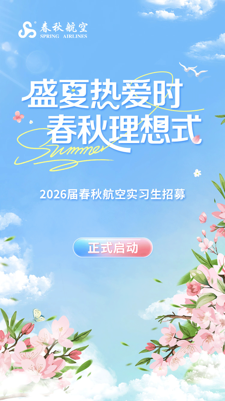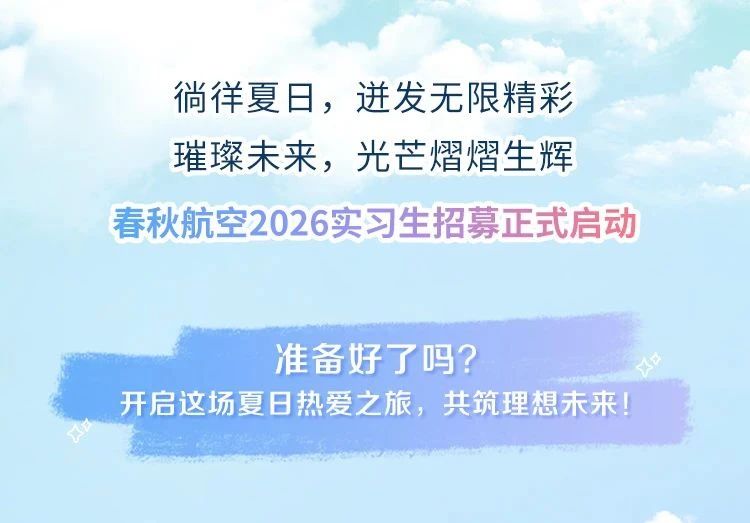 招聘信息 | 春秋航空2026屆實習生招募正式啟動!