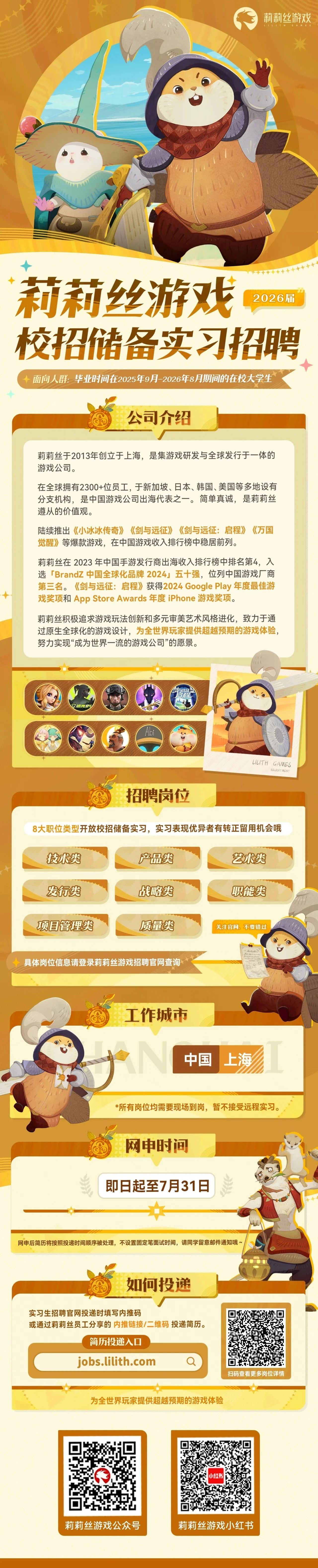 招聘信息 | 莉莉絲2026校招儲備實習招聘,來了!