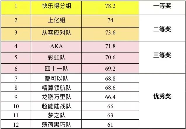 本次大賽的獲獎名單如下: