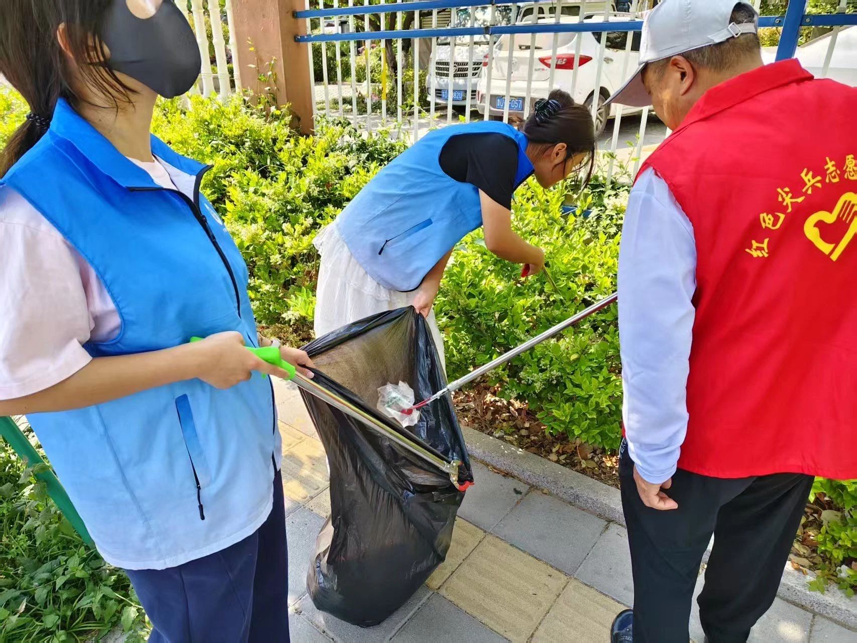 在社區主干道上,志愿者們彎著腰,揮動著掃帚,將路面上堆積的落葉、紙屑等垃圾一一掃起,裝進垃圾袋。公園里,幾位志愿者小心翼翼地鉆進花叢,用夾子仔細撿拾隱藏在枝葉間的煙蒂、塑料袋和零食包裝。有的垃圾卡在石縫里,志愿者們就蹲下身子,用手指一點一點摳出來,全然不顧弄臟了自己的手。