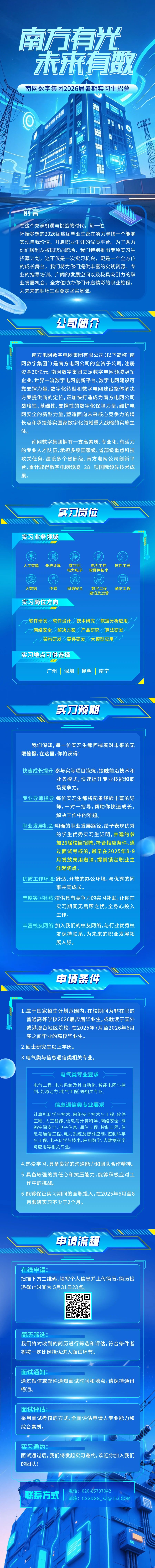 招聘信息 | 南網數字集團2026屆暑期實習生招募公告