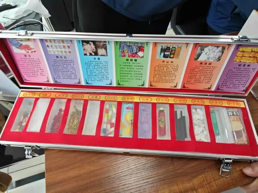 活動現場,禁毒展板區化身“沉浸式課堂”。專業講解員手持仿真毒品模型,對照圖文展板,將傳統毒品與新型毒品的“真面目”一一拆解:海洛因如何摧毀人體免疫系統、搖頭丸怎樣引發精神紊亂,甚至連看似無害的“郵票”“彩虹煙”等第三代毒品的隱蔽性都被深度剖析。居民們近距離觀察毒品仿真樣品,觸摸印有骷髏標志的“毒郵票”模型,真切感受到毒品的危險與狡猾。