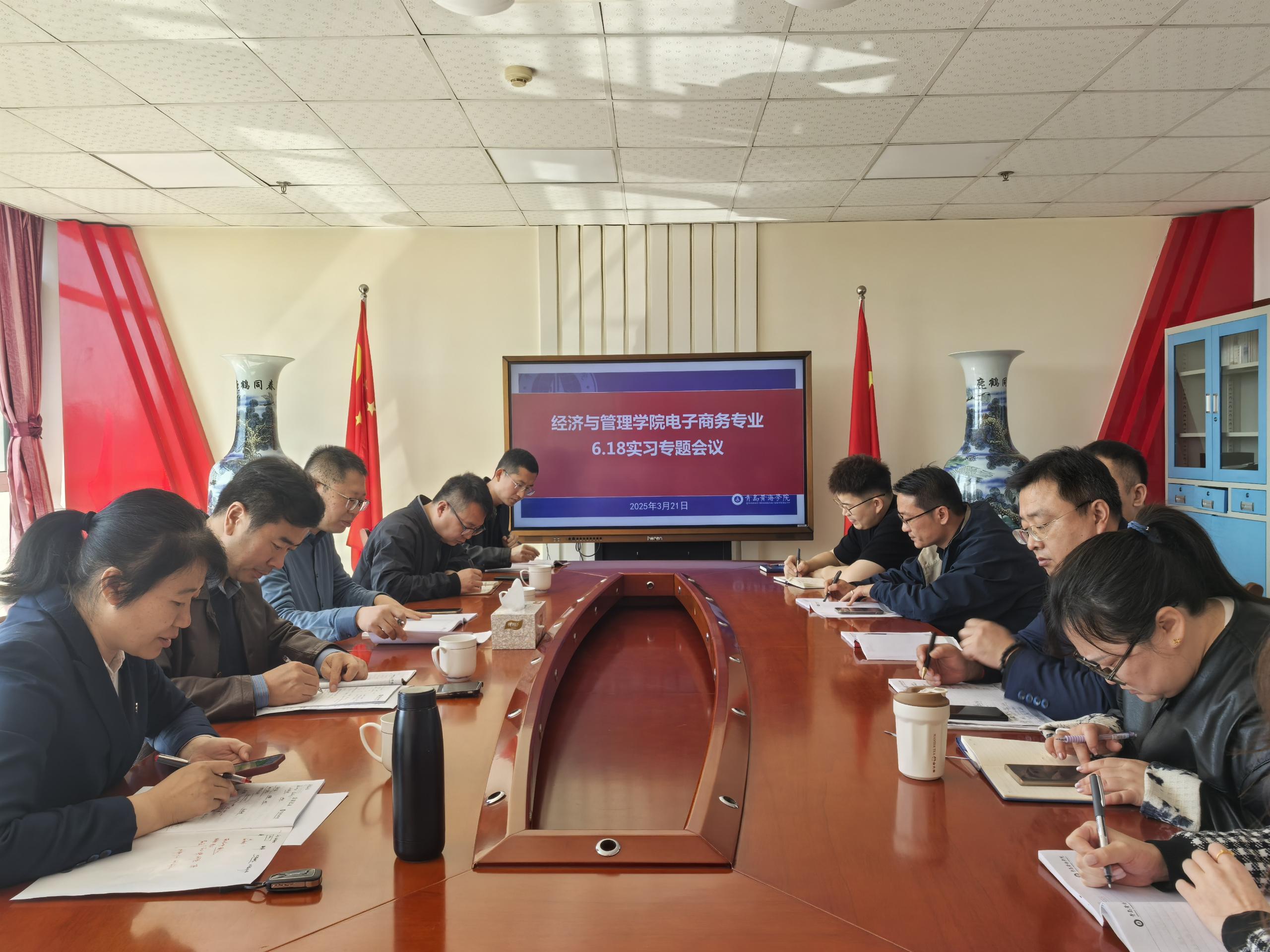 2025年3月28日上午,益企商旅(山東)科技服務有限公司代表一行專程來訪,與青島黃海學院校長助理、數字商務學院院長孫在福教授,院長助理李燕,以及電子商務專業骨干教師、輔導員代表齊聚一堂,圍繞校企深度協同、共建“618”電商大促實戰實訓項目展開深入交流與規劃,旨在共同探索人才培養模式革新的新路徑。