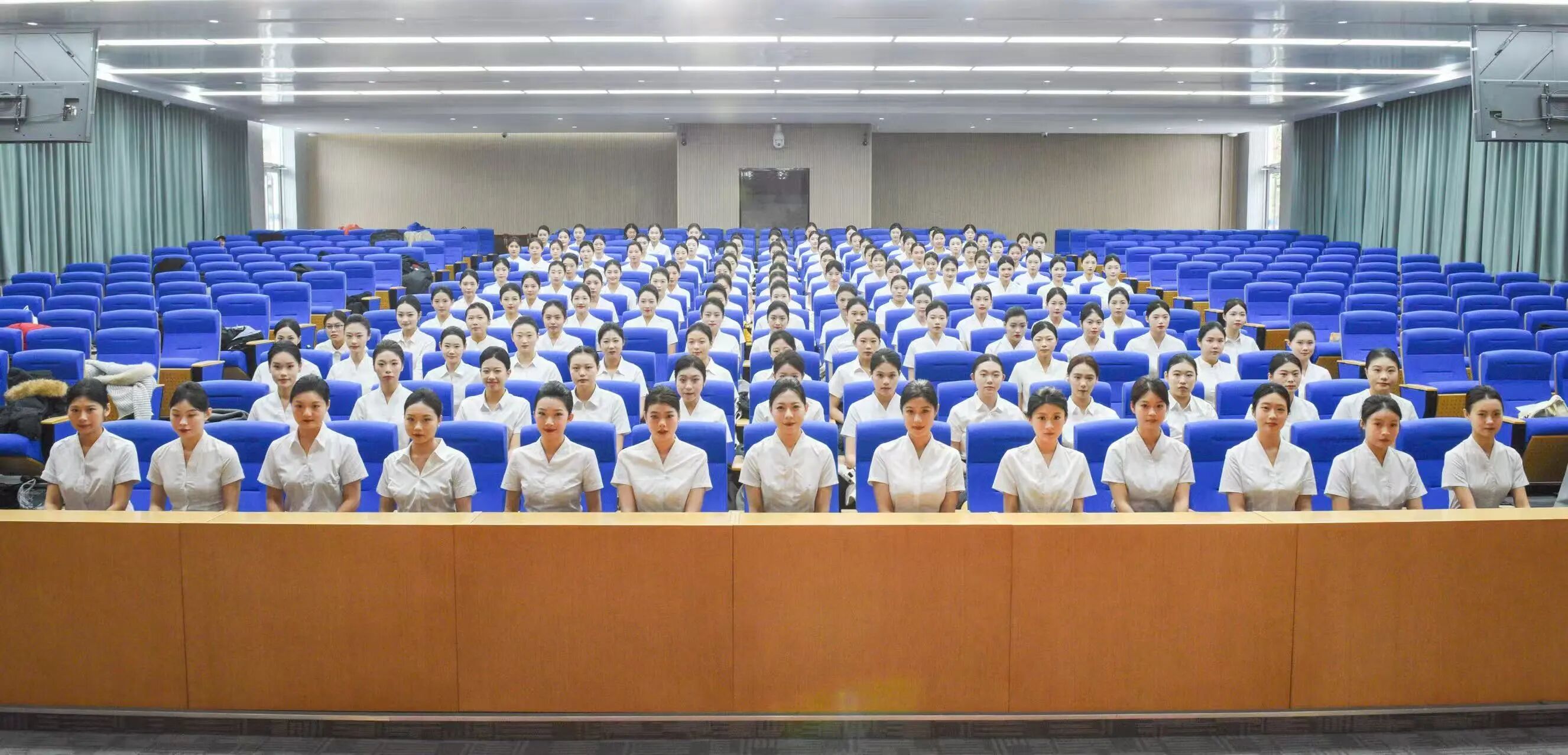 本次招聘面向全日制大專及以上學歷的女生,年齡放寬至18-25周歲,要求身高163cm-173cm,普通話標準,英語口語流利者優先。面試現場,同學們身著職業裝,儀容整潔、精神飽滿,展現出我校學子良好的職業素養與精神風貌。