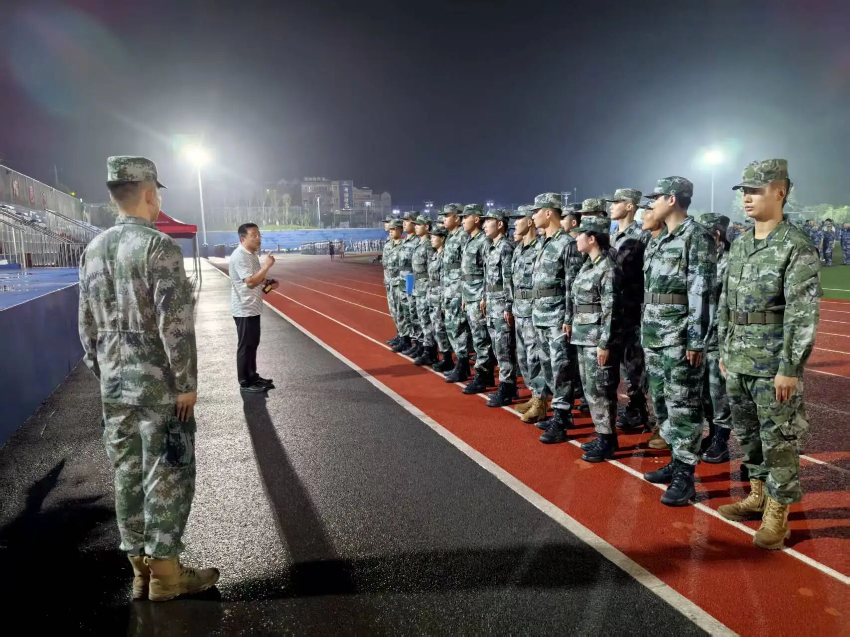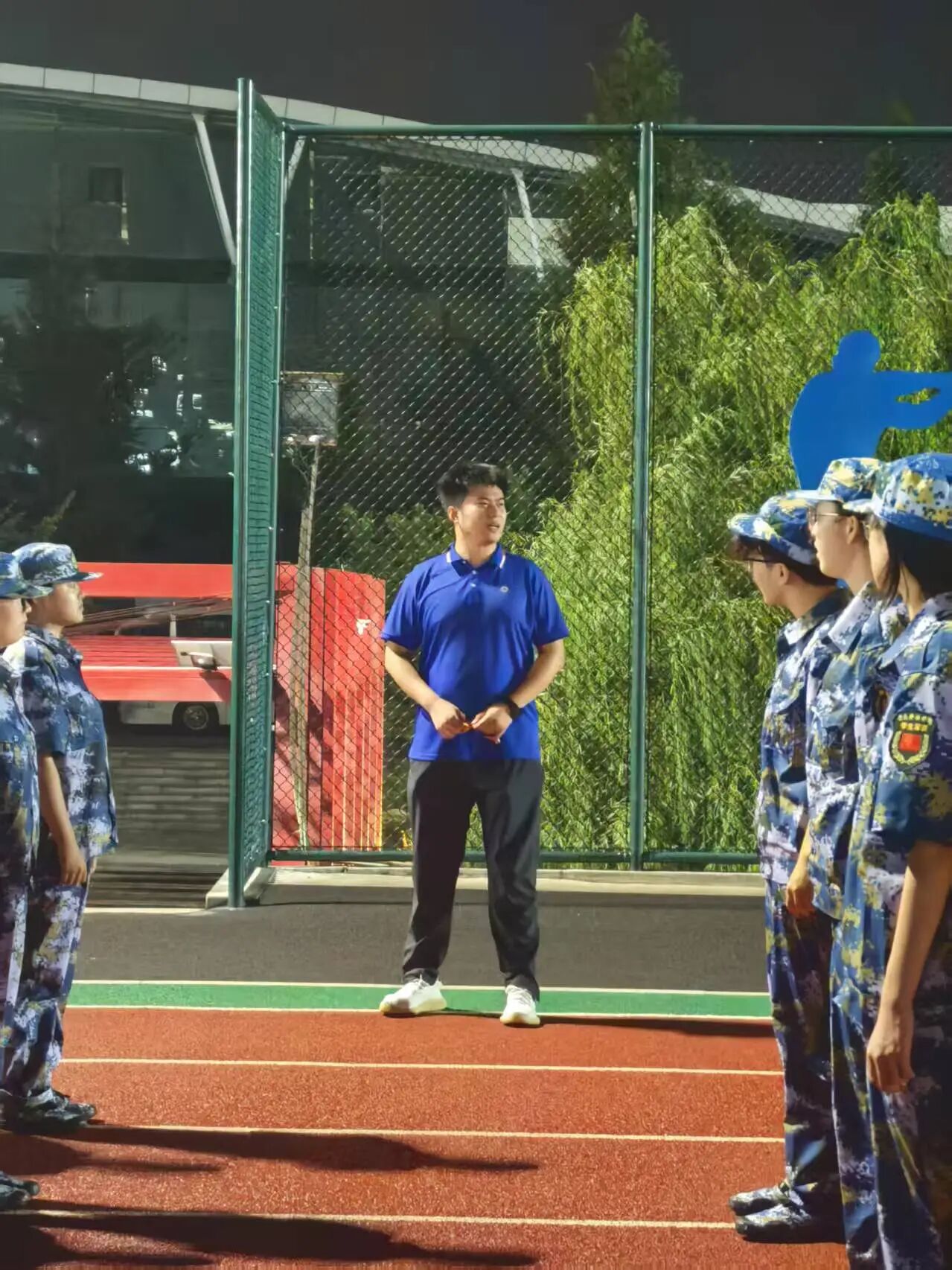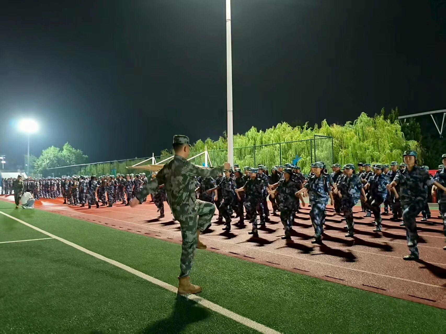 晚上的訓練是軍訓的重頭戲。同學們在操場上進行了隊列訓練,包括立正、稍息、跨立、齊步走、正步走等基本動作。教官嚴格要求,同學們認真練習,盡管汗水浸透了衣服,但沒有人退縮。通過晚訓,同學們不僅增強了體質,更磨礪了意志,培養了團隊協作精神。最后朱升學老師對同學們首日軍訓出現的問題進行總結發言,提出了希望接下來的軍訓同學們能夠積極進取。