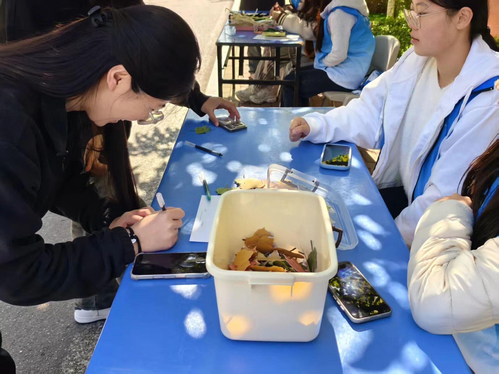 對離家求學的我們來說,思念從來都不是轟轟烈烈的情緒,而是藏在無數個細碎的日常里:食堂里吃到的家常菜總少了媽媽的味道,夜晚在校園散步時,身邊少了爸爸嘮嗑的聲音,就連看到朋友圈里朋友分享的家鄉秋景,都會忍不住愣神片刻。而這場“落葉敘情”活動,正是為大家搭建了一個無需掩飾的溫暖情緒出口,可俯身寫下心里話:是對遠方父母“天冷記得添衣,別忘喝熱湯”的叮囑,是對異地摯友“下次見面要一起逛遍校園秋景”的約定,或是對自己“學業要全力以赴,不給時光留遺憾”的鼓勵。寫完心里話后,你可以把落葉小心裝進志愿者準備的箱子里,也可以帶回宿舍夾在課本中珍藏。