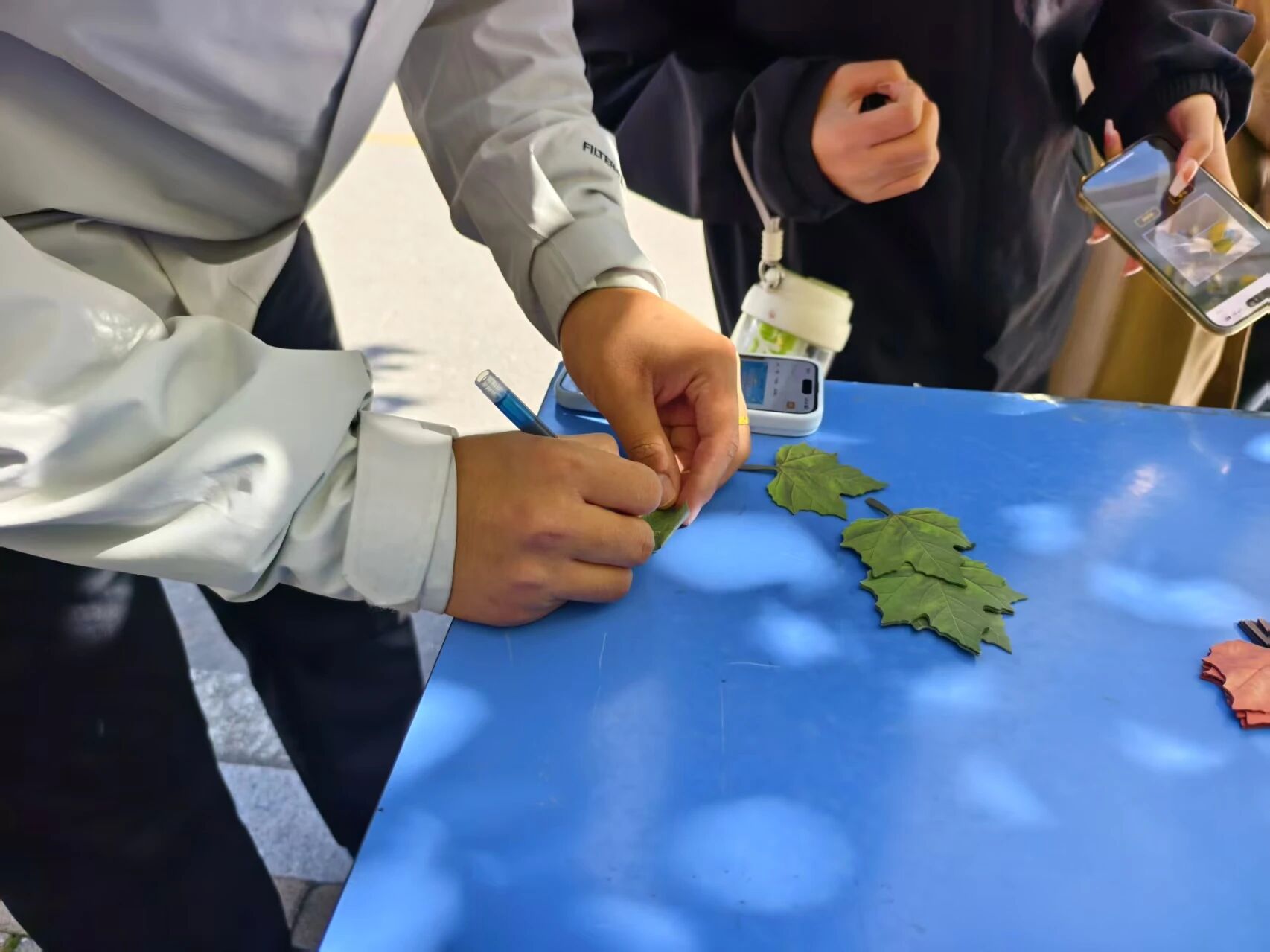比起千篇一律的普通紙張,仿梧桐、銀杏、楊樹葉形態的落葉便利貼,藏著獨屬于秋天的靈動與自然感。本次活動以定制款落葉便利貼為“情感信箋”,無需同學們刻意準備,“小黃鋒”志愿者們早已提前備好樣式豐富的款式:有復刻梧桐葉邊緣弧度的淺咖色便利貼,葉脈紋路清晰如真;有仿銀杏葉扇形的淡黃色便利貼,邊角還印著細碎秋光圖案;還有模擬楊樹葉細長形態的淡綠色便利貼,自帶幾分夏末余溫。每一張便利貼都神似自然落葉,既保留了紙張的便攜,又藏著秋日的詩意,等待成為你心事的“收納盒”。
