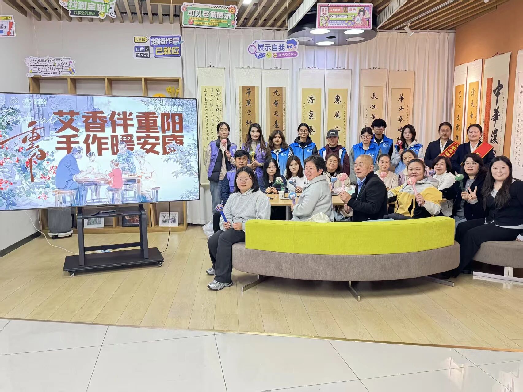 當"小黃鋒"的志愿旗幟飄揚在星光島社區,茱萸的清香彌漫在活動中心,一場以"歲歲有重陽,有你不重young"為主題的志愿服務活動,正用青春力量為傳統節日織就跨越代際的"溫暖傳承網"。數字商務學院"小黃鋒"志愿者協會以"一針一線傳承文化根脈,一老一小共譜重陽新篇"為理念,通過講解節日由來,重陽艾草錘制作構建起傳統節日與青年擔當的深度對話。