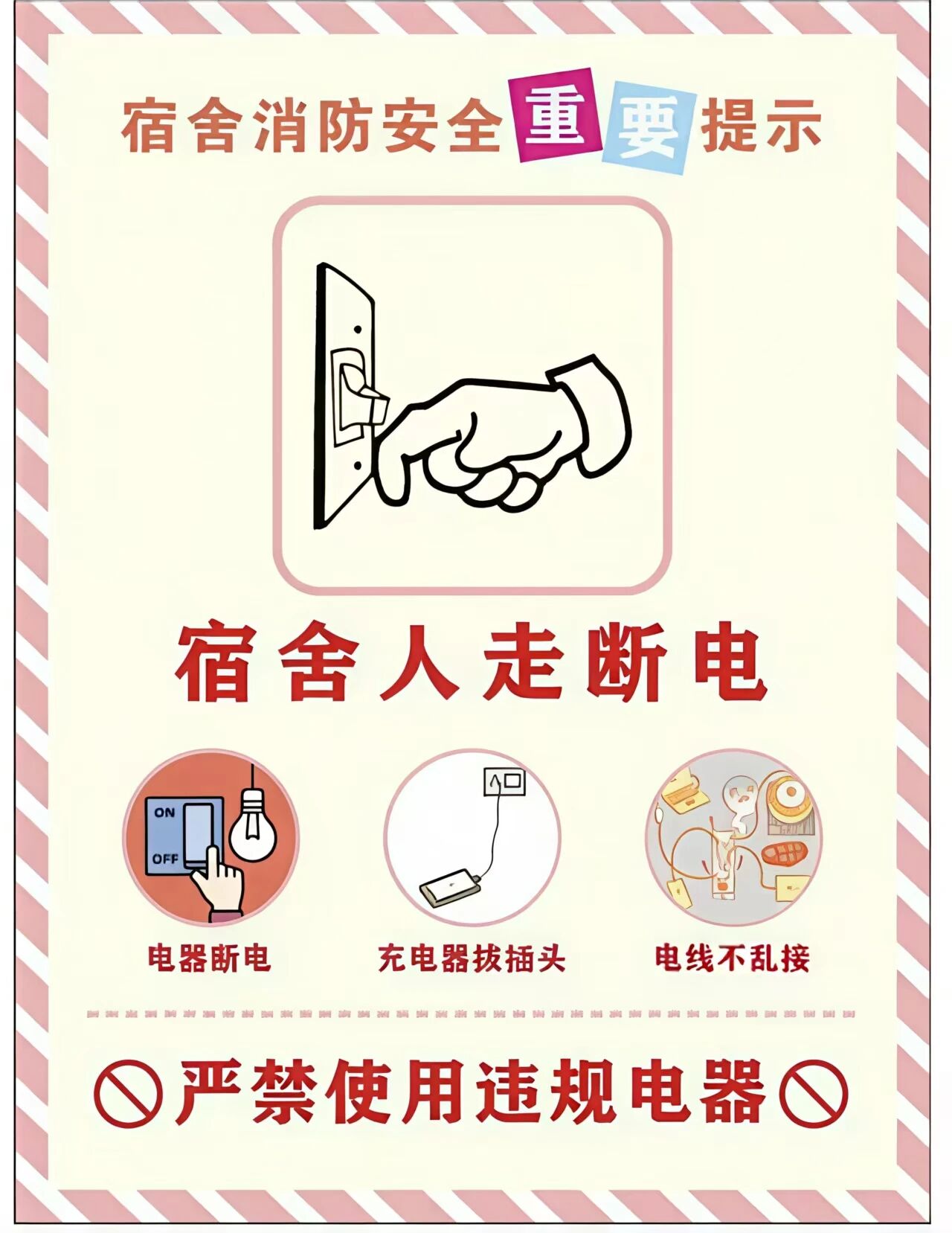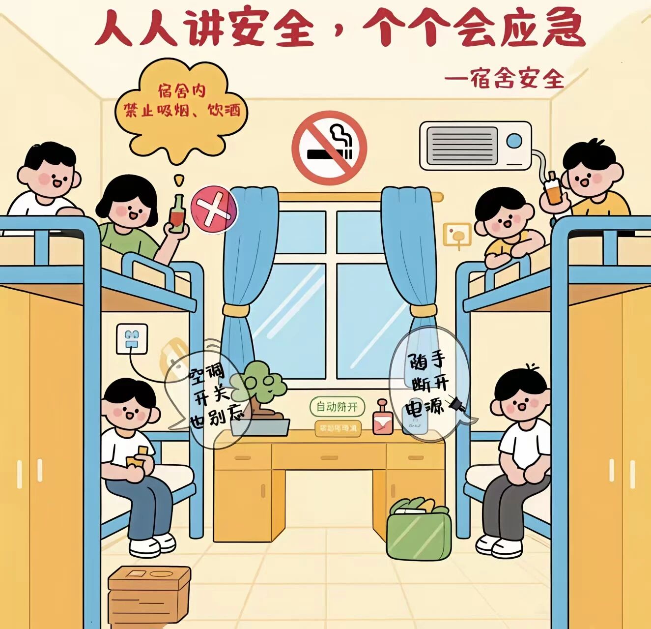 3.室友之間相互提醒、相互監督,發現違規用電、存放危險物品等行為及時制止,共同營造安全和諧的住宿環境。