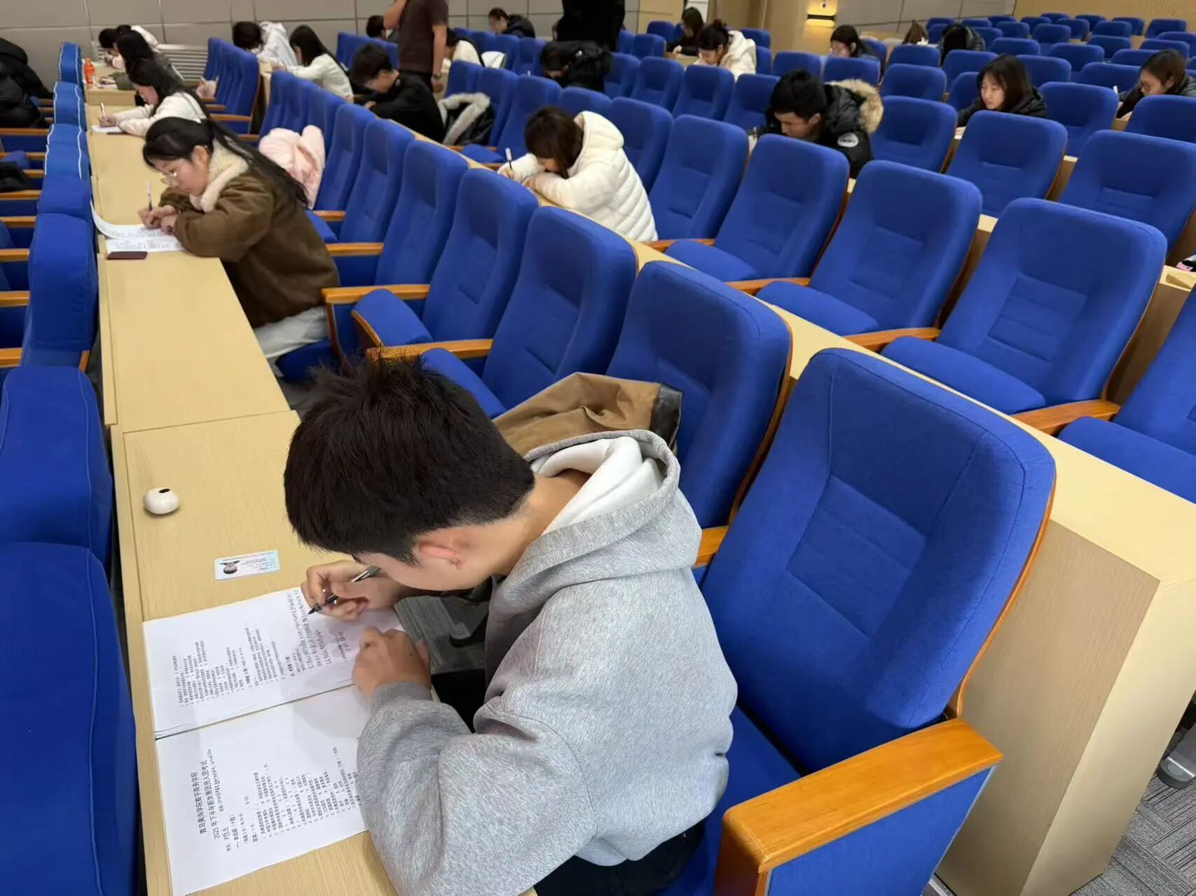 考試前夕,考場秩序井然,報考同學懷揣對共青團的向往提前抵達,或靜坐等候、或抓緊復盤備考內容,滿溢積極進取的備考氛圍,盡顯對入團的熱忱與重視。考試伊始,考場上僅余筆尖摩挲試卷的沙沙聲,同學們全神貫注審題作答,將所學理論知識與對共青團的理解凝于筆尖,以嚴謹態度踐行入團初心,展現青年追求進步的真誠姿態。