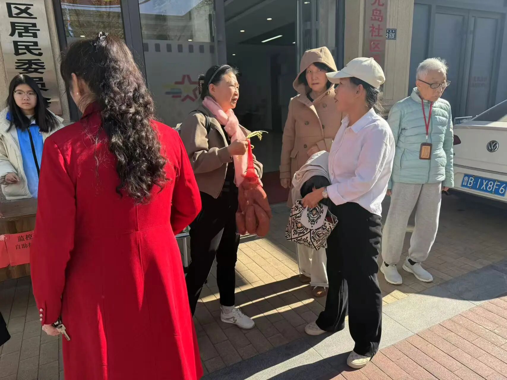 考慮到部分居民自駕前來選購,且地瓜分量較重、搬運不便,志愿者們主動提供“暖心搬貨”服務。居民挑選好心儀的地瓜后,無需自己費力搬運,只需告知車輛停放位置,志愿者便會迅速上前接過地瓜袋,快步走向停車場,小心翼翼地將地瓜整齊放進車輛后備箱,全程動作麻利又細致。“本來還擔心買多了搬不動,沒想到你們直接幫我送到車上,太省心了!”剛買完10斤蜜薯的劉先生笑著說道,對志愿者的貼心服務連連稱贊。