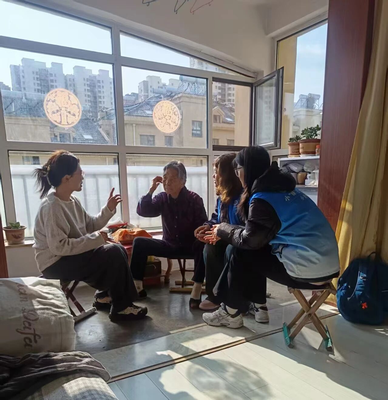 志愿者們和老人圍坐在陽光滿灑的陽臺上,傾心交談,認真傾聽他們的心聲。有的老人緩緩講述著年輕時在田間勞作的趣事,有的則回憶起養育子女的艱辛與甜蜜,志愿者們時而點頭回應,時而輕聲提問,用溫暖的眼神鼓勵老人暢所欲言。他們促膝長談,分享著彼此的故事。