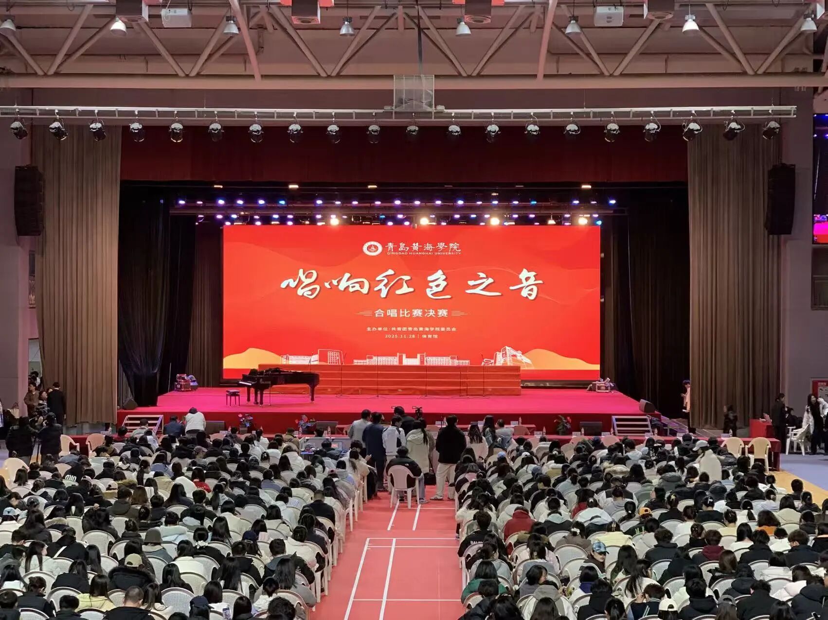 為豐富校園文化生活,弘揚時代精神,激發青春激情,展現當代學生精神風貌,青島黃海學院于2025年11月28日晚,在體育館舉行“唱響紅色之音”合唱比賽。