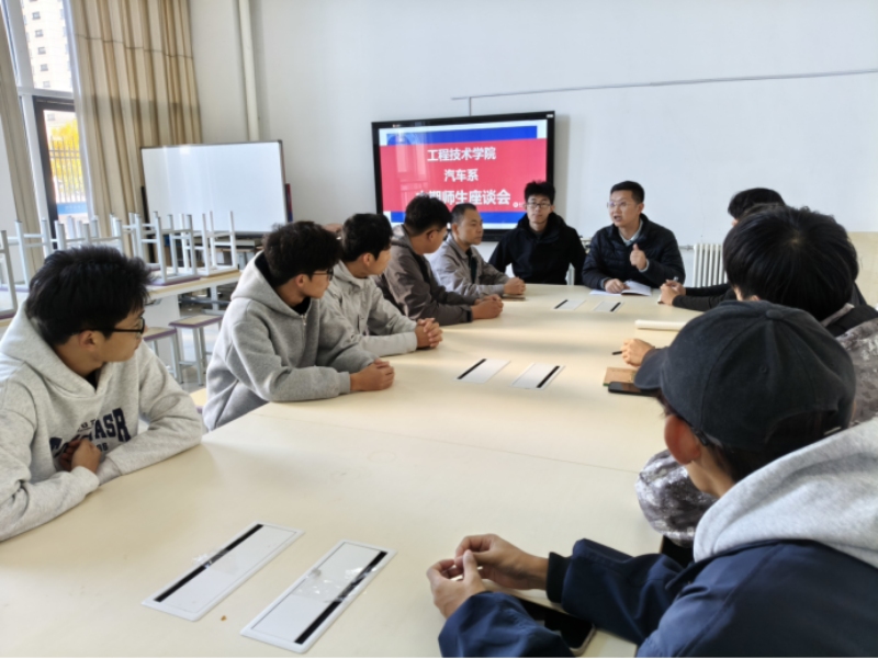 為進一步加強師生間的溝通交流,精準把握2025級新生的學習動態與思想狀況,及時回應和解決學生在學業及校園生活中遇到的困惑與問題,汽車系于11月6日在2#實驗樓101教室組織召開了2025級新能源汽車技術專業學生中期座談會。汽車系主任劉守峰及全體專業課教師以及2025級新能源汽車技術專業各班級學生代表共同參加了此次座談。