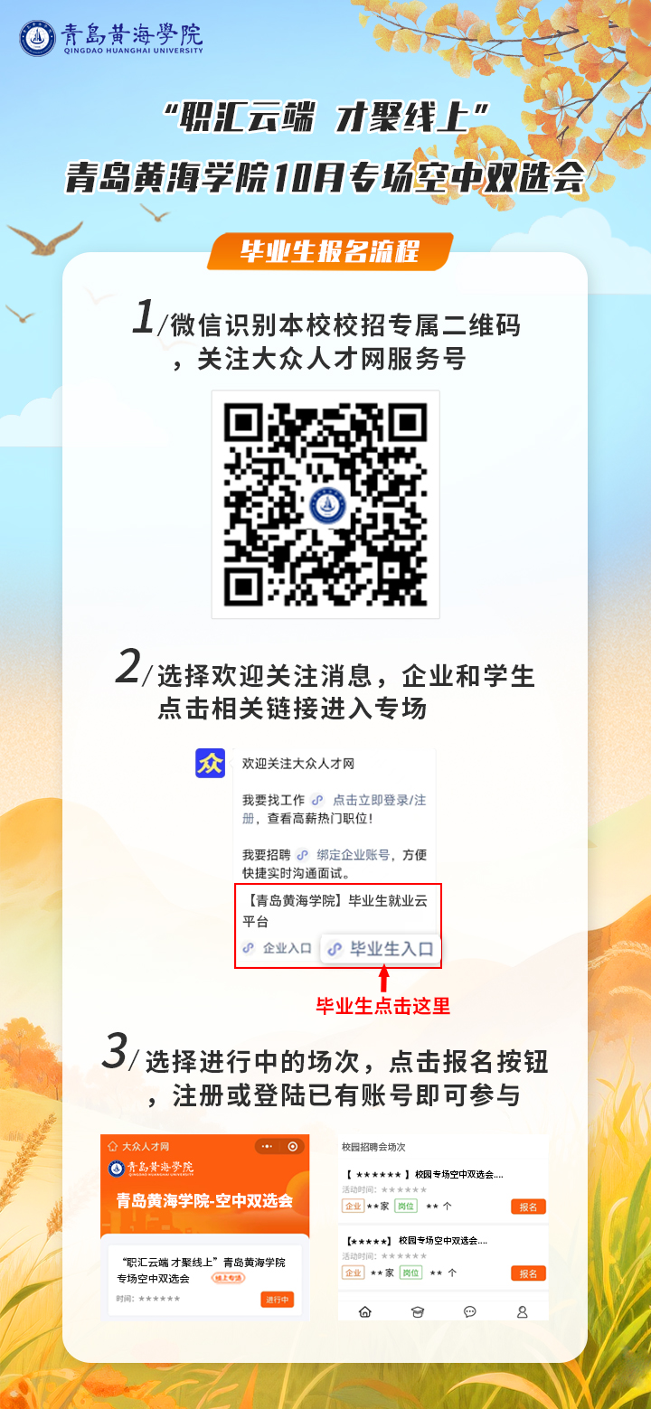 "職匯云端·才聚線上“青島黃海學院10月專場空中雙選會