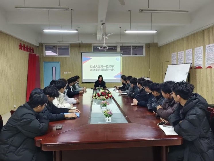 為深入學習貫徹關于加強新時代廉潔文化建設的重要精神,落實立德樹人根本任務,引導青年學生樹立正確的世界觀、人生觀、價值觀,筑牢拒腐防變的思想道德防線,學院學生黨支部2025年12月3日組織舉辦了一堂題為“扣好人生第一粒扣子,走穩青春廉潔每一步”的專題黨課。本次黨課由學生黨支部書記王培芹主講。