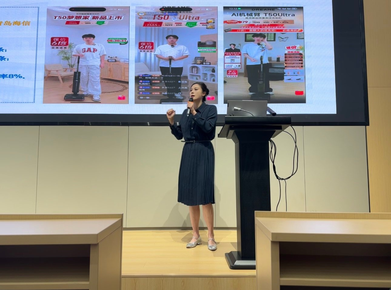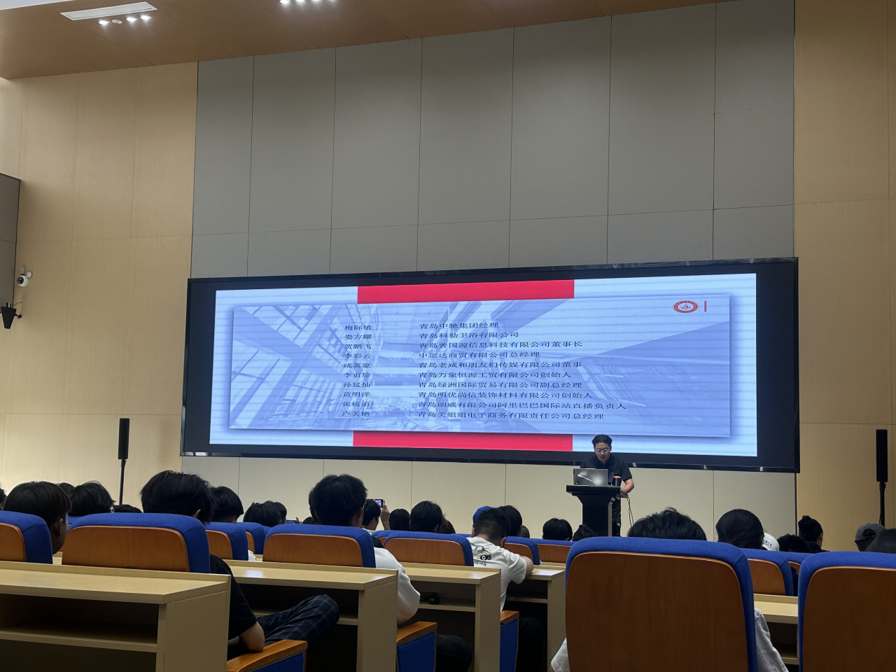 在介紹學院獨特的實踐教學體系時,李辰主任重點講解了 “課程實訓-項目競賽-校內孵化”三層遞進模式。他表示,學院建有先進的直播基地和創新創業工作室,學生從大一開始就能在仿真環境中演練,進而參與真實項目乃至國家級競賽。“我們的學生團隊曾助力蘇州追覓、青島海信等知名企業創造數億銷售額。這些閃亮的戰績證明,你們的‘戰場’從入學第一天起就在校園里。”李主任鼓勵新生們要敢于實踐,不怕犯錯,將學院的優質資源轉化為個人核心競爭力。