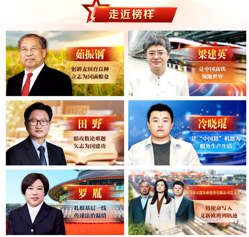 節目中邀請了茹振鋼、梁建英、冷曉琨、田野、羅胤5名黨員和義烏市天盟實業投資有限公司黨支部、空軍95944部隊60分隊黨支部,通過典型事跡展示、現場訪談互動、重溫入黨志愿書等形式,集中展現先進典型忠實踐行黨的創新理論突出事跡,彰顯基層黨組織戰斗堡壘作用和黨員先鋒模范作用,與會黨員同志深受感動,以此為標桿,提供對照檢查、見賢思齊的鏡子。本次活動同時也為黨員與非黨員同志提供了共同參與、交流思想的機會,在共同學習、討論榜樣的過程中,加深了解,讓非黨員同志更真切地感受到黨組織和黨員同志的先進性、純潔性及其在各項事業中的先鋒模范作用,從而消除隔閡,增進信任,營造團結和諧的氛圍。
