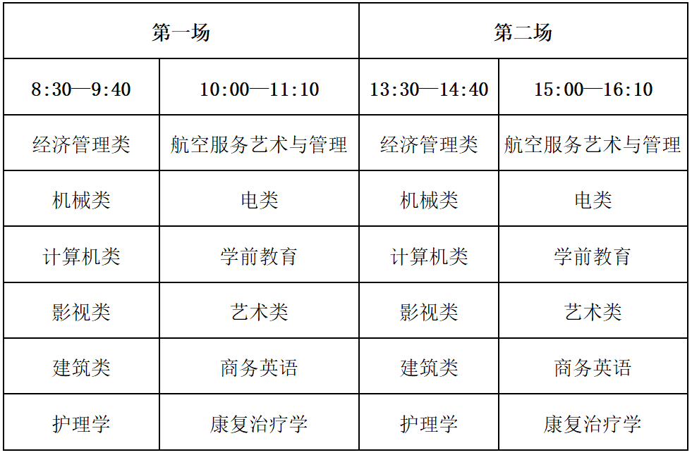 1.為方便考生,我校每個專業(類)上午、下午各安排一場考試,考生可自主選擇其中一場或多場參加測試,但測試科目相同的專業(類)只有一次考試機會。