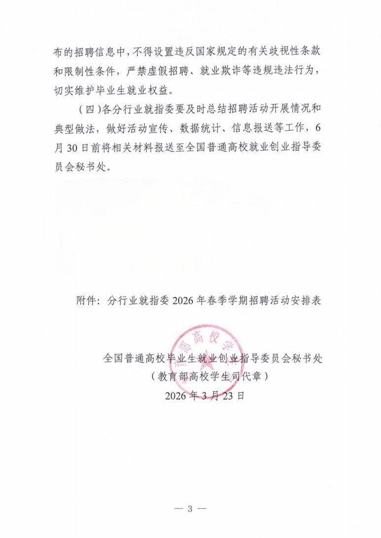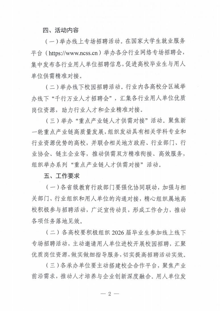 關于面向2026屆高校畢業生舉辦分行業春季招聘活動的通知