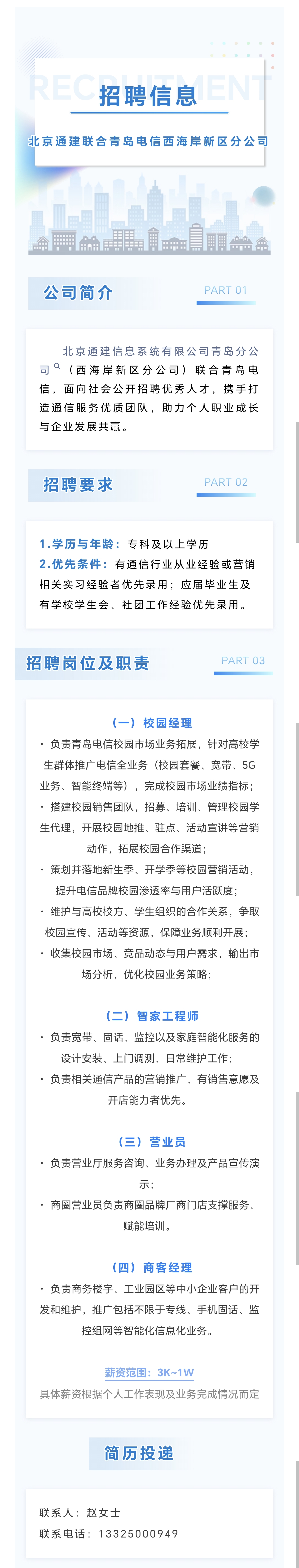 招聘信息丨校園招聘丨北京通建聯合青島電信西海岸新區分公司