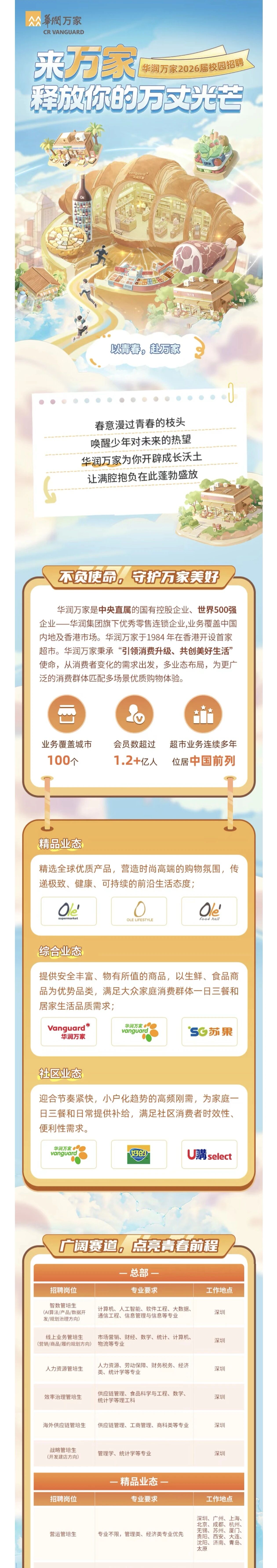 招聘信息丨華潤萬家2026屆春季校園招聘正式啟動!