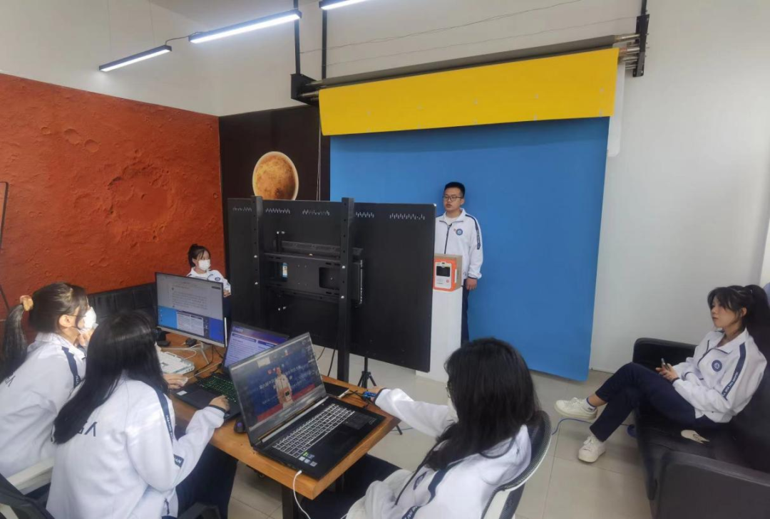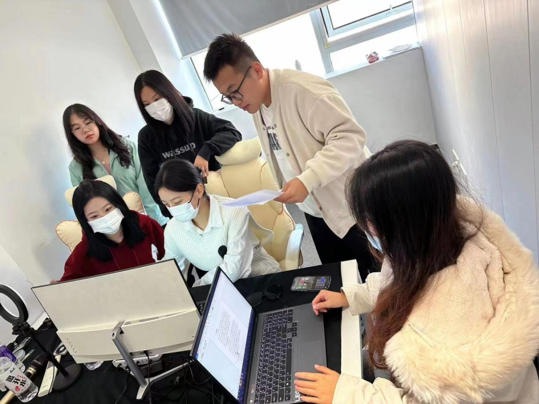 倒計時兩小時——反復調試電腦及投屏設備,確保不出任何由于網絡和音視頻等外部緣由而存在的潛在問“危機”。項目團隊每個成員根據自身擅長負責此項目的“一環”,調節心態,提高專注度,各司其職,按照先前的排練經驗,全力配合項目負責人李天電腦軟件連接設備進行最后的試演。