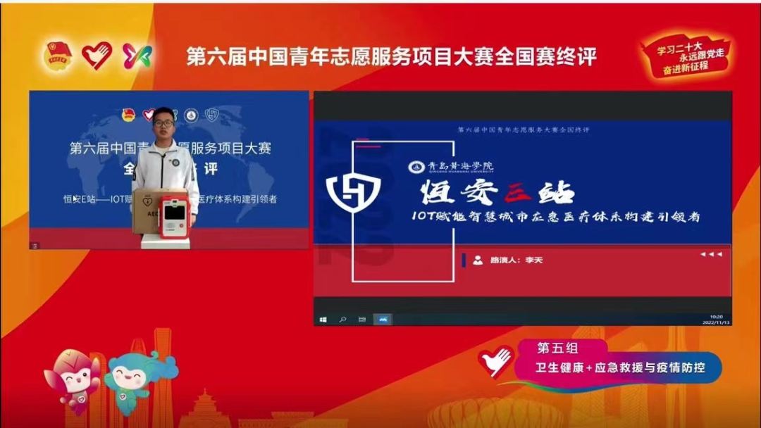 志愿服務本身沒有優劣之分,我們項目也是不斷地在學習之中成長。恒安E站—IOT賦能智慧城市應急醫療體系構建引領者項目在藝術學院李青洋老師與潘紅葉老師的帶領下,通過與團隊成員不斷完善資料程序,一路披荊斬棘,終入圍第六屆中國青年志愿服務項目大賽全國賽初評優秀項目前五百強。至如今第六屆青年志愿者服務大賽的國賽終評中榮獲佳績,這份成績離不開學校的專業師資力量為項目提供的方向引導和校友協會為我們提供的經驗指導和技術支持,更是離不開我們每一位黃海學子對于中國志愿公益事業的一腔熱忱。