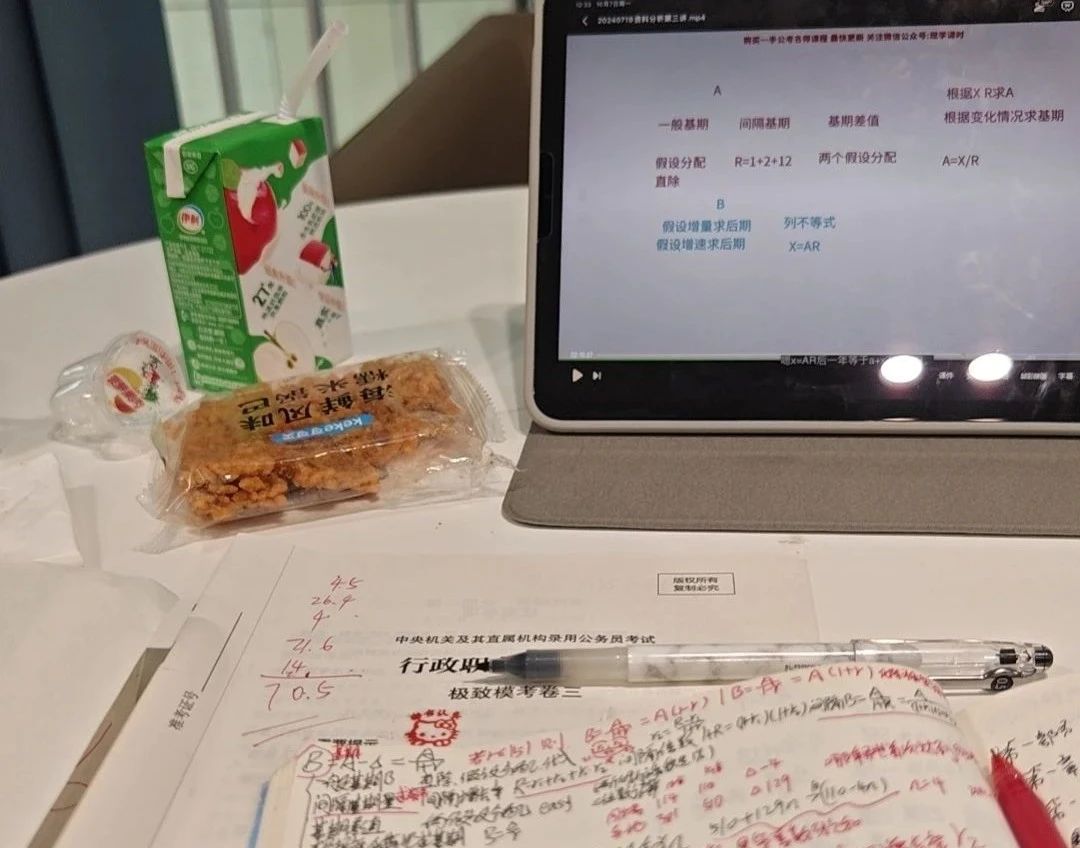 她每天刷一套行測真題(1小時40分鐘),拿出20分鐘對答案看看錯題,再拿出1小時寫1道申論小題和大作文框架。