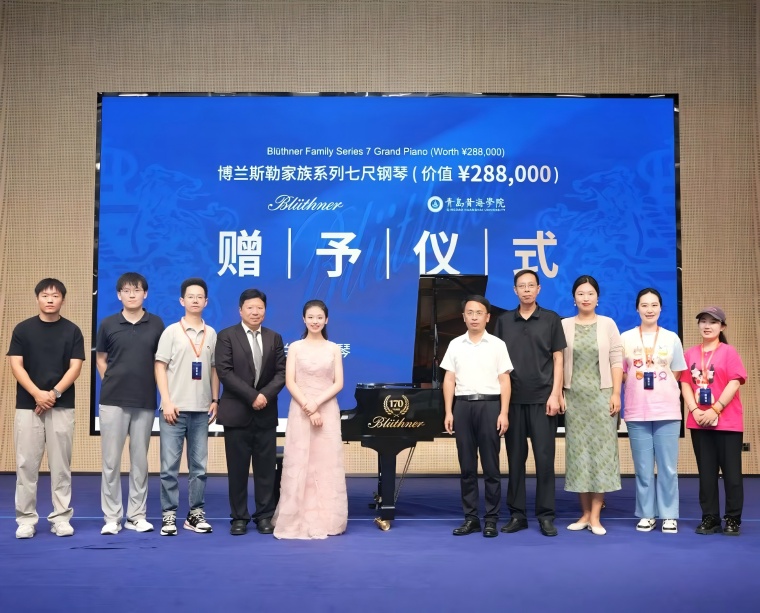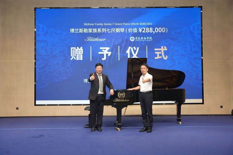 有著172年歷史的德國國寶級鋼琴品牌博蘭斯勒鋼琴,以“黃金音色”聞名。博蘭斯勒集團將一臺價值28.8萬元的家族系列七尺演奏級三角鋼琴贈予青島黃海學院。