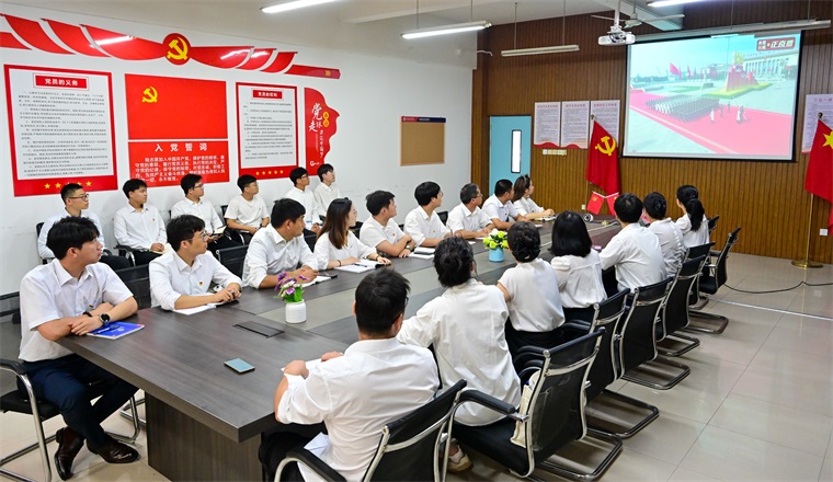 上午9時,紀念大會正式開始。董事長劉常青,校長李清山,黨委副書記、副校長孟廣東等校領導與黨委理論學習中心組成員、相關職能部門負責人在辦公樓會議室集中收看大會直播。與此同時,全校各黨總支積極響應,組織黨員師生在會議室、多媒體教室等場所同步收看。廣大師生心懷崇敬,聚精會神地聆聽習近平總書記發表的重要講話,共同見證人民軍隊雄壯威武的嶄新風貌,深刻感受偉大祖國的繁榮與富強。