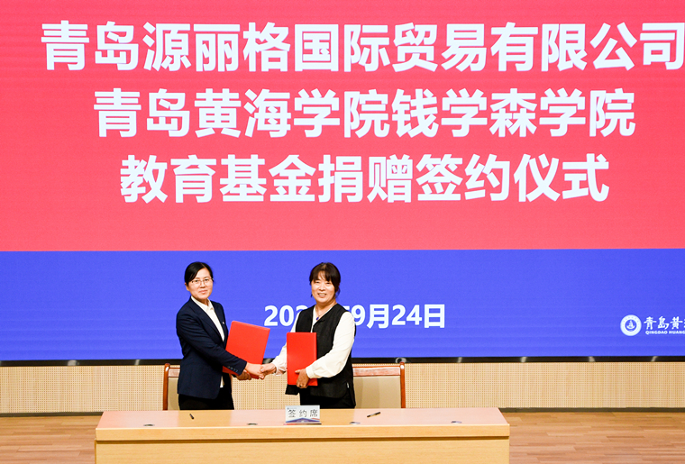 在全場矚目下,青島源麗格國際貿易有限公司董事長高艷芹與錢學森學院常務副院長陳玉杰分別代表校企雙方,鄭重簽署教育基金捐贈協議。企業此次捐贈20 萬元人民幣,專項用于支持錢學森學院學生創新實踐項目開展、優秀學生獎勵及困難學生資助,精準對接學生成長發展需求。