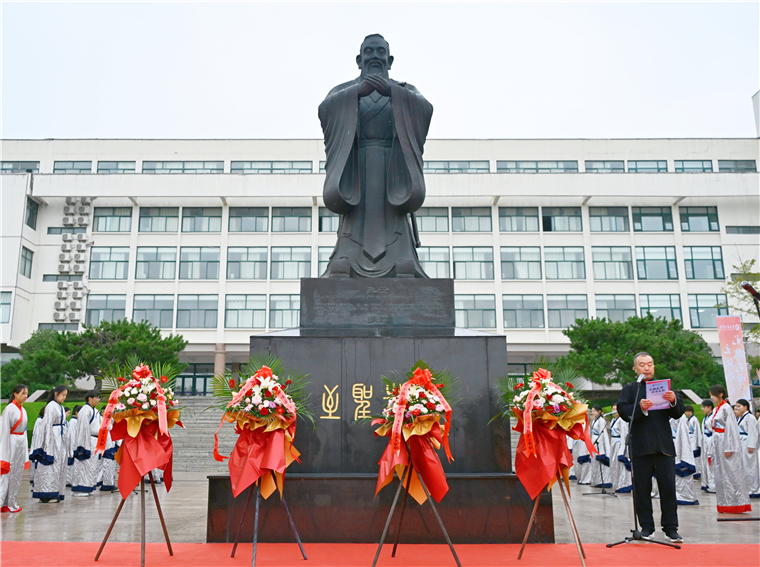 他指出,紀念孔子,最好的方式是創造性地傳承和發展他的思想,要將紀念活動激發出的敬仰之情,轉化為立德樹人的實際行動。希望同學們能深刻感悟先師智慧,自覺傳承中華文脈,將個人的理想追求融入國家和民族的事業中,珍惜時光,勤學修德,明辨篤實,努力成長為可堪大用、能擔重任的棟梁之才,為實現中華民族的偉大復興貢獻青春力量!