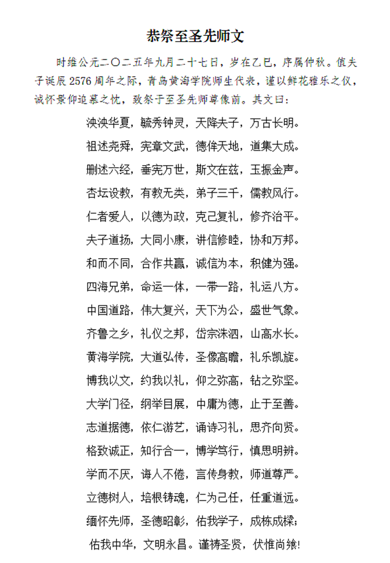 禮敬先師 傳承文脈|青島黃海學院隆重紀念孔子誕辰2576周年