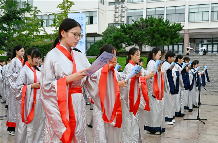 “大學之道,在明明德,在親民,在止于至善。”現場師生集體誦讀《大學》《論語》選段,以聲傳意、以心悟理,讓經典之聲回蕩校園,讓先師智慧浸潤心靈。