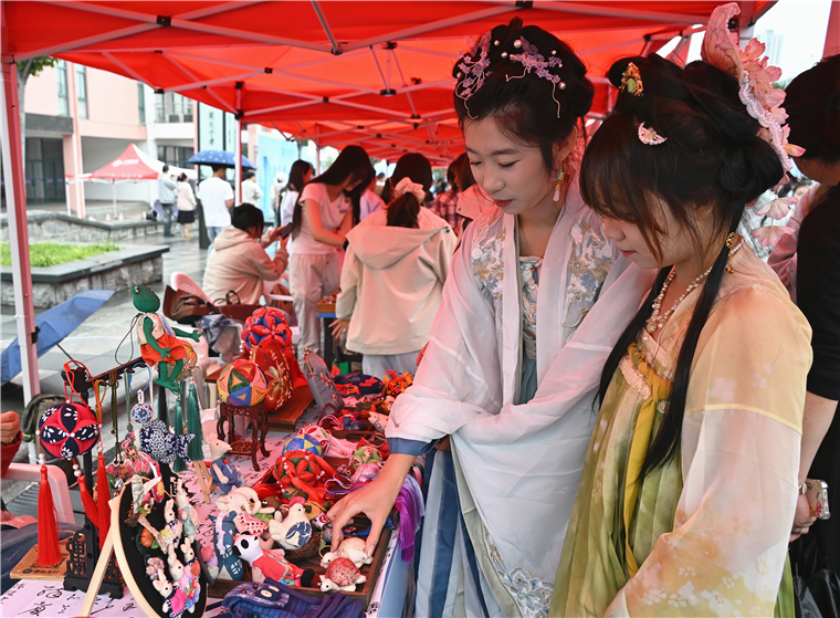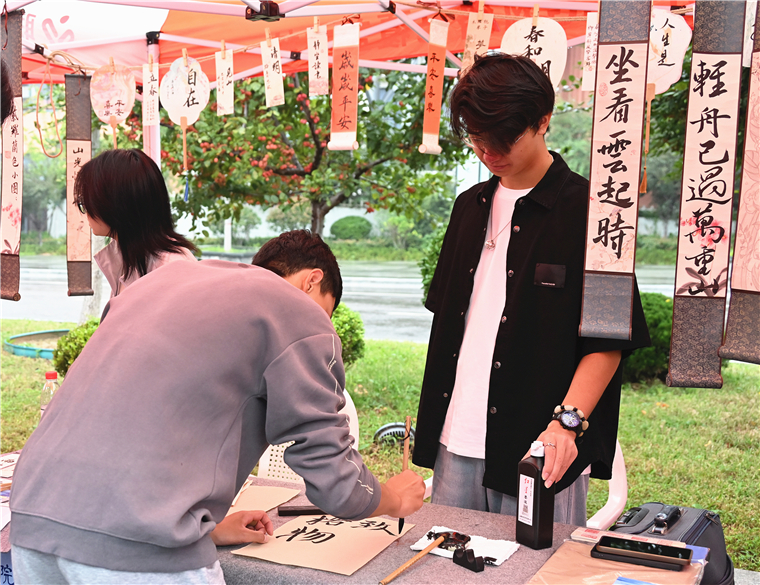 今日的八德路,充滿濃郁的傳統文化氛圍。30余個攤位錯落有致,從能玩、能學的手作技藝,到能嘗、能品的特色美食,應有盡有,恰似傳統文化的百寶箱,將沉浸式體驗與傳統文化展示融為一體,為全校師生獻上一場精彩絕倫的傳統文化盛宴。