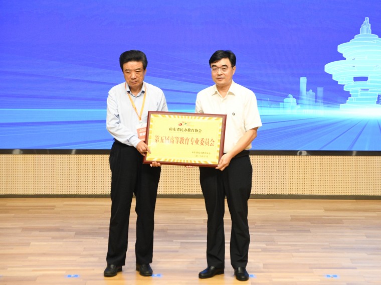 隨后,會議進行高專委成立儀式。山東省民辦教育協會執行副會長、山東文化產業職業學院董事長李京平宣讀《關于同意成立山東省民辦教育協會第五屆高等教育專業委員會的函》。盛振文會長為高專委授牌,并為主任委員、副主任委員和秘書長頒發聘書。